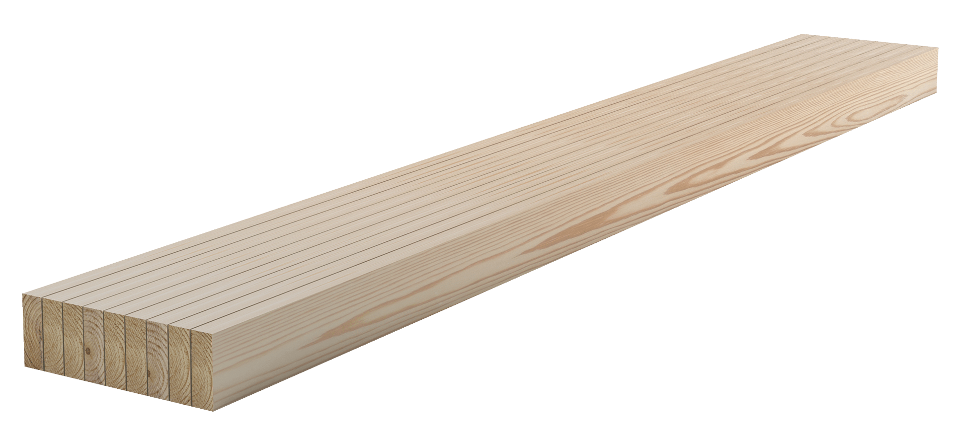 Glulam (glued laminated timber) is made by gluing several solid pieces of lamstock together lengthwise. This creates a solid beam with great strength. The glulam beams can be manufactured in a variety of sizes for applications where strength and durability are the most important factors.