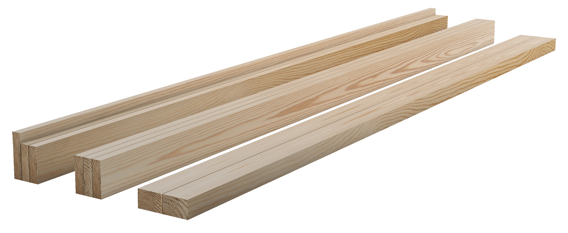 The elements are mainly used in window and door frame manufacturing, but they can also be made as duo beams (two lamstock glued together) or trio beams (three lamstock glued together) which are used in construction.