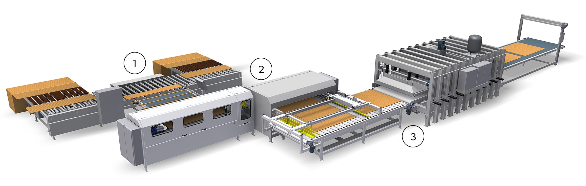 The hot-water or hot-oil press line, type LV from Kallesoe Machinery is an efficient production plant ideal for making laminated boards such as furniture boards, solid wood panels, cabinet boards and solid timber worktops.