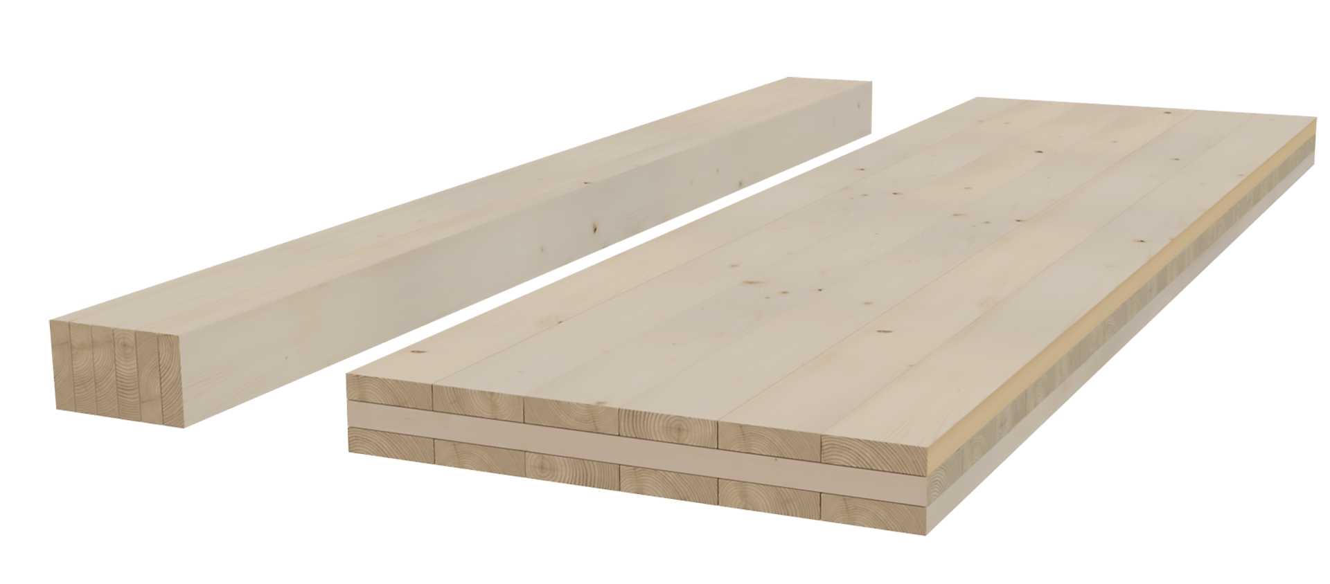 CLT and glulam differ in the ways that they are used in a building. CLT is used for surfaces such as walls, floors, and floor separation. Glulam is primarily used for the loadbearing frame in a building such as rafters, beams, or columns.