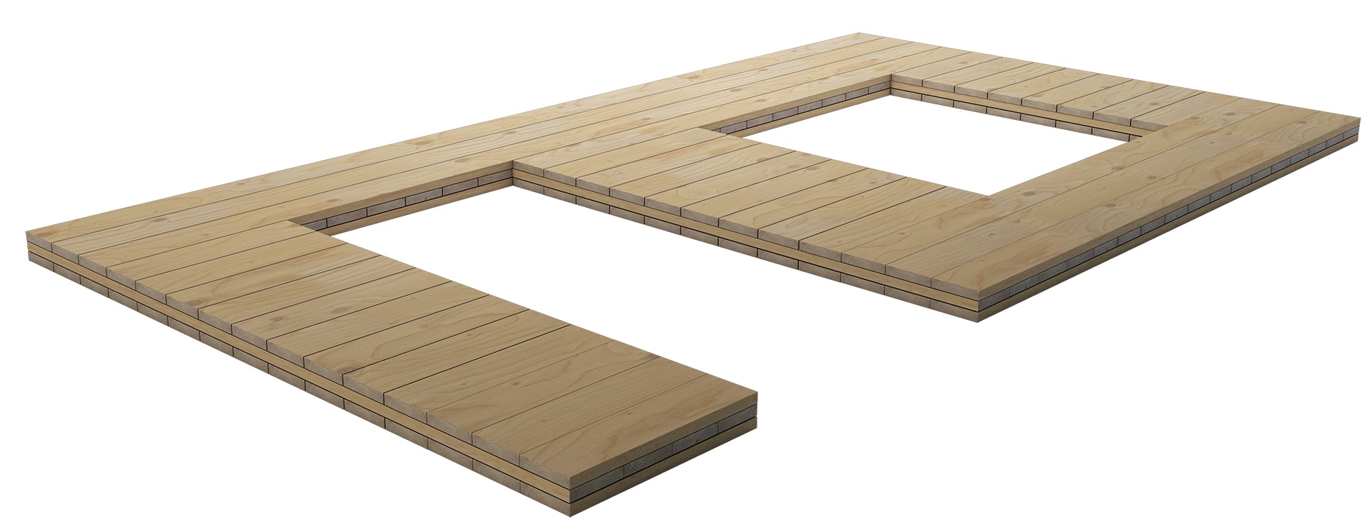 CLT is made by cross laminating several layers perpendicular to each other. A single CLT panel can make up an entire wall section or several panels can be combined to create one long wall. You can read more about CLT here and learn about the way they are made. Examples of press solutions for whole CLT panels can be found here and this Combi press offers a solution for pressing sections of CLT and glulam.