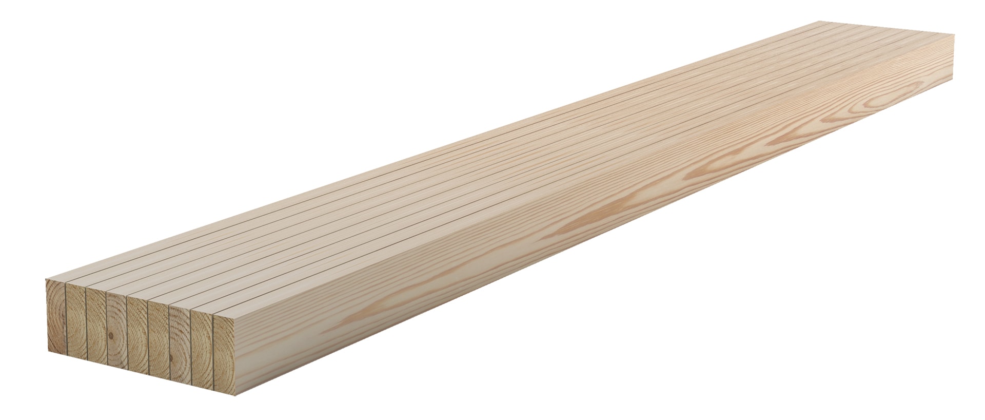 Glulam is made of lamellas that glued and then pressed together. You can read more about glulam and the way they are made.